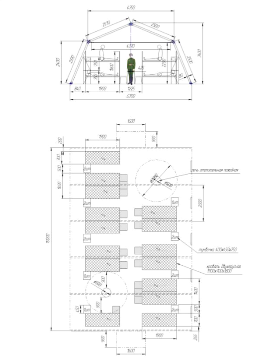 Вместимость палатки: 30-32 человек на двухъярусных кроватях.